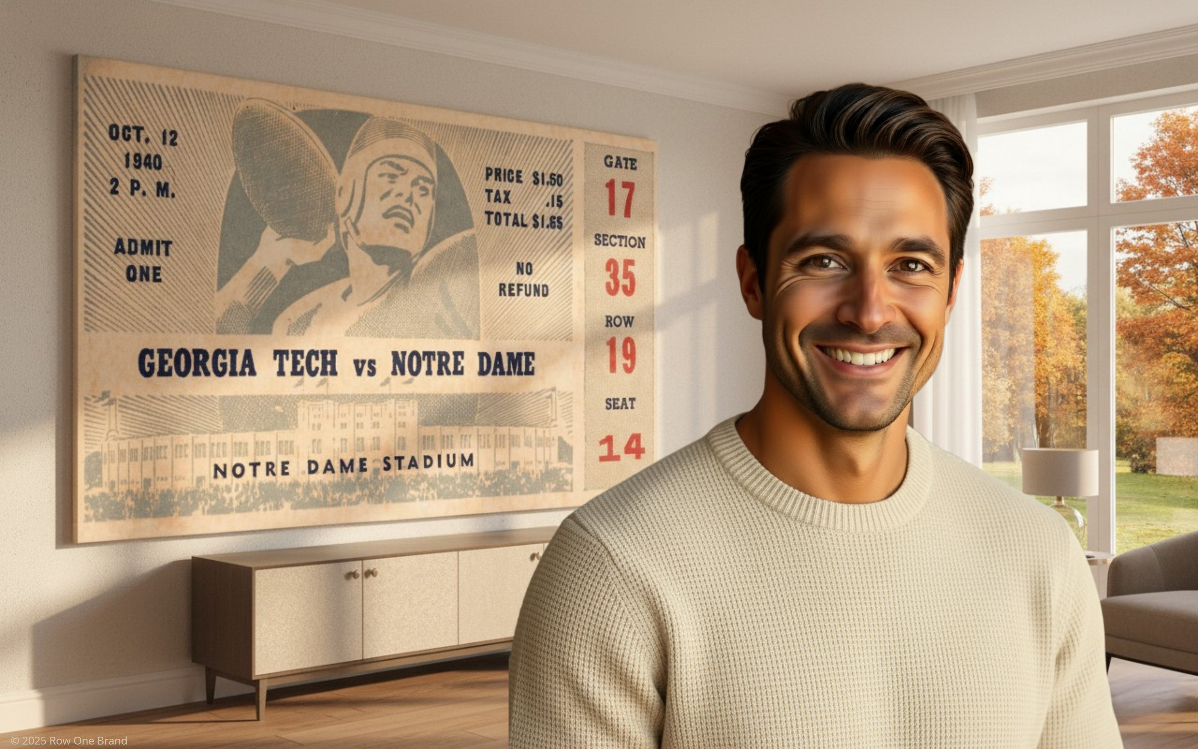 Row One's historic sports art is not affiliated with, licensed, sponsored, authorized, or endorsed by any college, university, team, league, artist, athlete, coach, venue, other brand, or any licensing entity.
