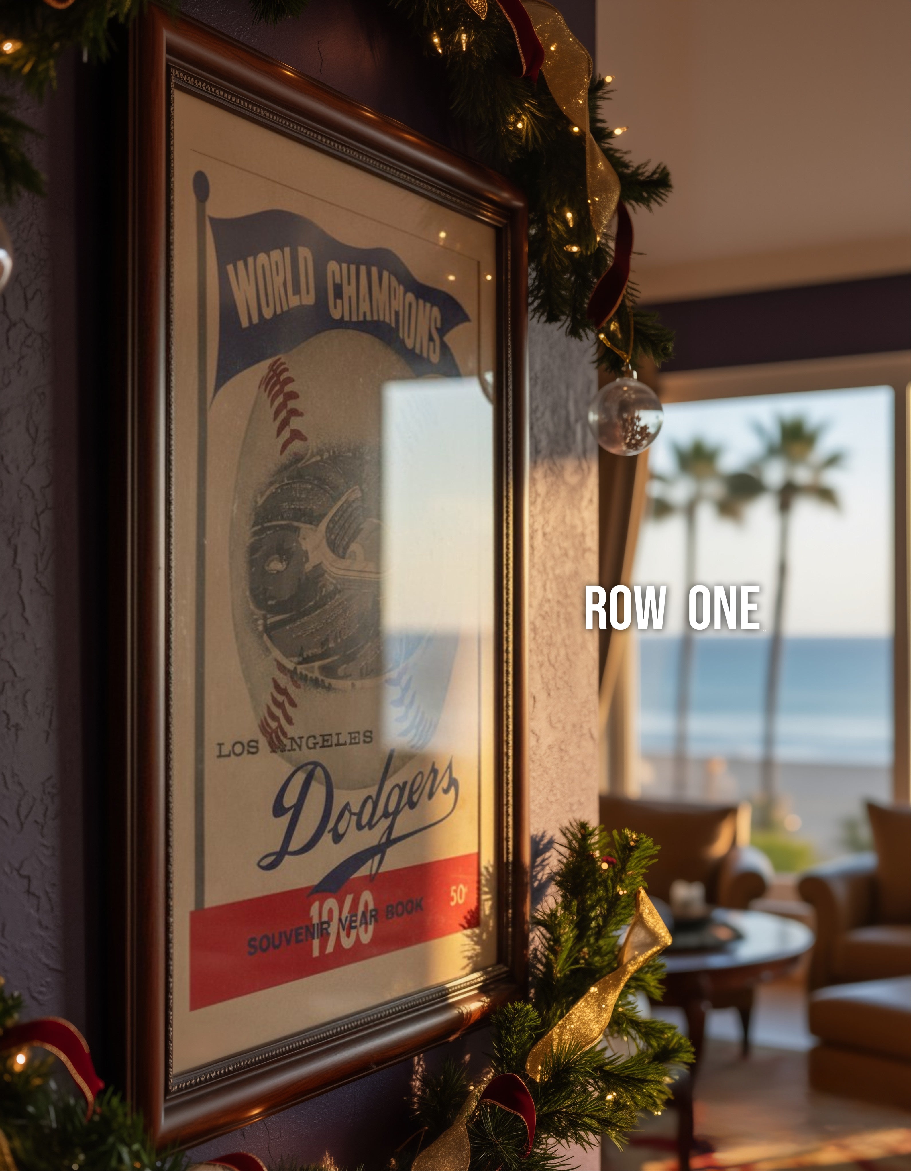 Row One Brand is an American sports brand founded over a decade ago. Row One offers over 20,000 historic sports wall art prints created from sports artifacts in the public domain under U.S. Federal Copyright Law like the historic 1960 LA Dodgers Yearbook Cover Art above. The publication was never copyrighted and this beautiful cover art design fell into the public domain 65 years ago. Regardless, the cover art would be in the public domain because the publication's copyright was never registered or renewed according to a U.S. Copyright Office Records Search. Team names on our tickets and programs identify who played in the game and have great historical significance. Row One is not required to erase, "black out," or censor the historic publications we use to create our unique sports history products.